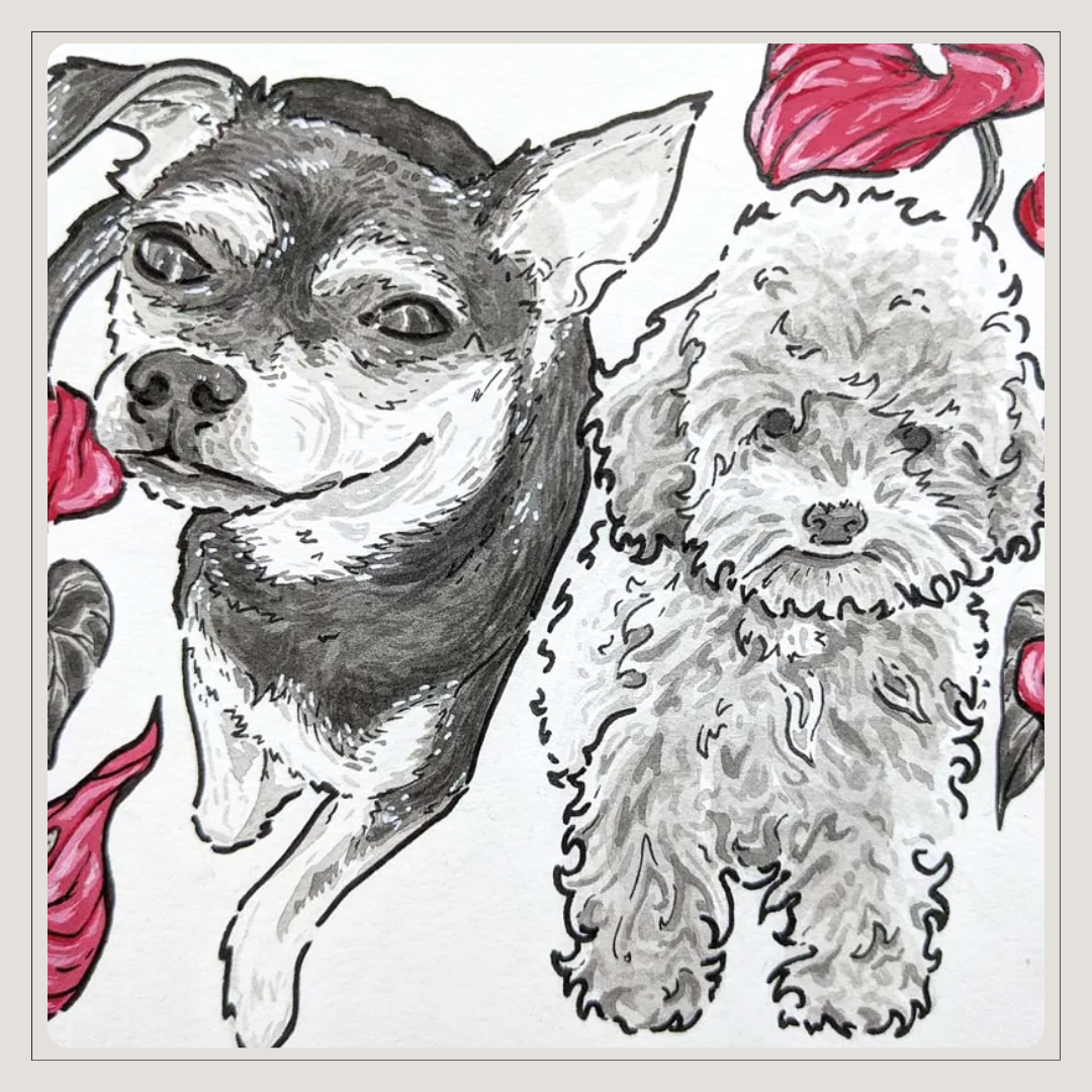 LRT Studio specialized in custom gouche and ink portraits on paper.